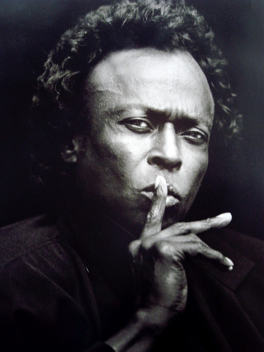 “Don’t play what’s there. Play what’s not there.” Miles Davis slow and smooth across the face of everything.